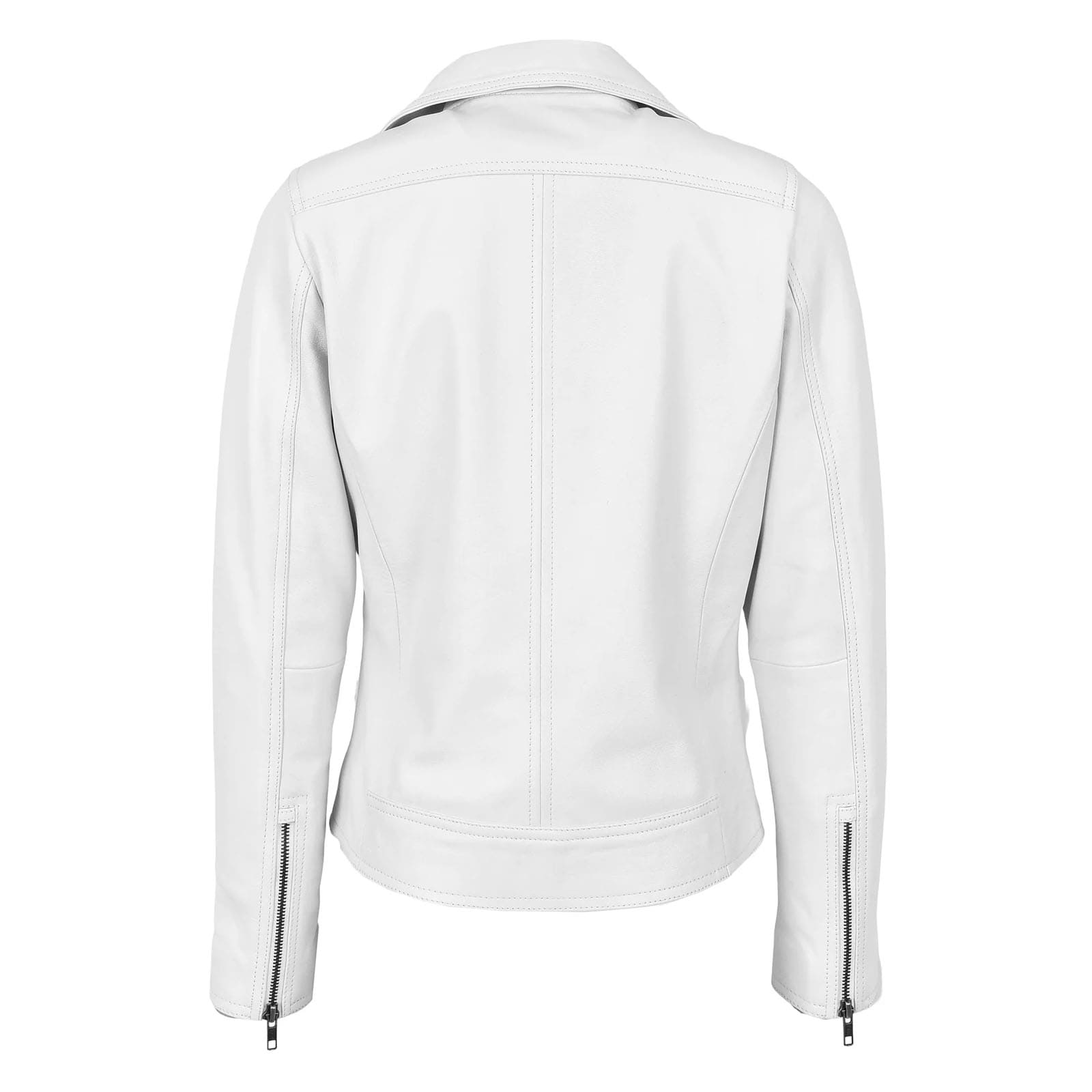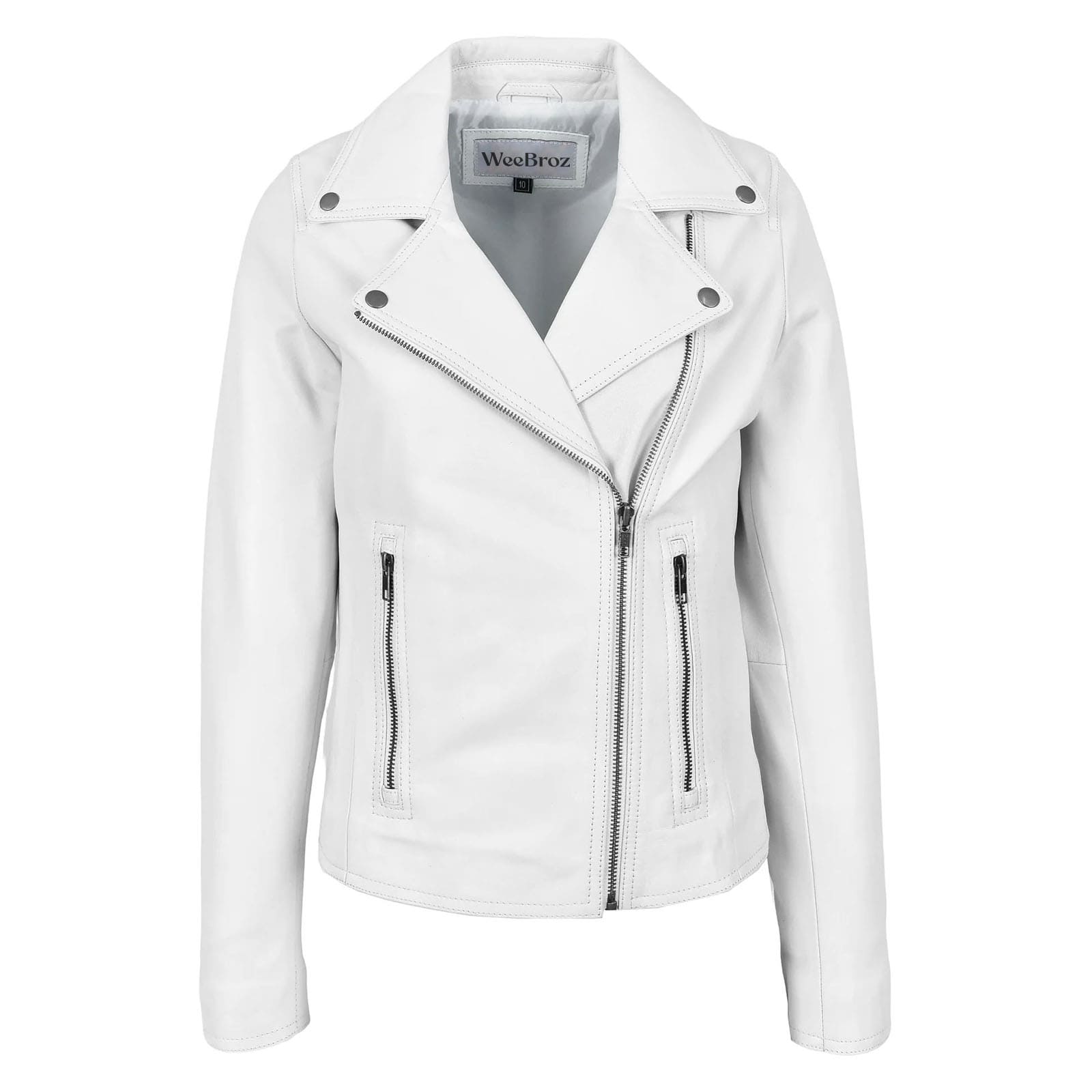 WeeBroz Women’s White Soft Leather Biker Jacket Cross Zip Style