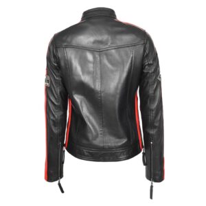 WeeBroz Women’s Red Leather Biker Jacket Motorcycle Badges Cafe Racer Style