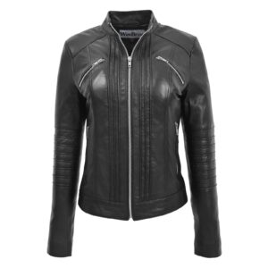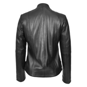 WeeBroz Women’s Black Leather Biker Jacket Standing Collar Slim Fit Style