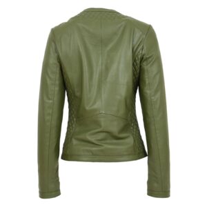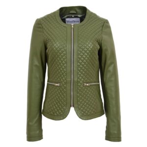 WeeBroz Women’s Olive Green Leather Biker Jacket Slim Fit Quilted Style
