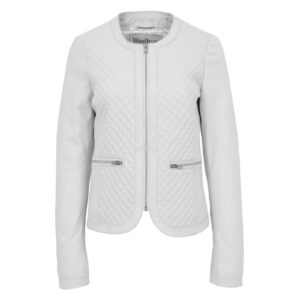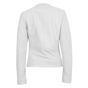 WeeBroz Women’s White Leather Biker Jacket Slim Fit Collarless Style