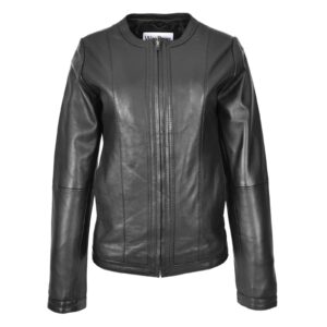 WeeBroz Women’s Real Black Leather Biker Jacket Collarless Slim Fit Style