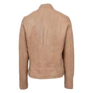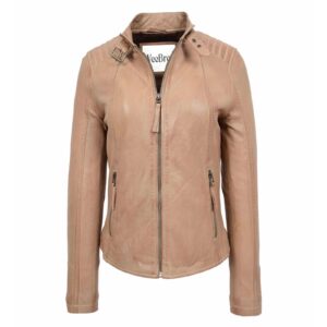 WeeBroz Women’s Beige Leather Biker Jacket Zipper Casual Style