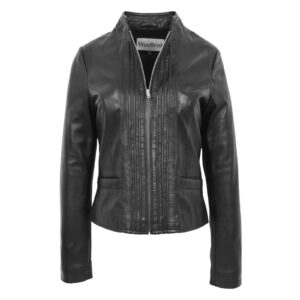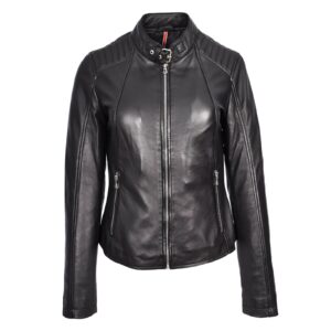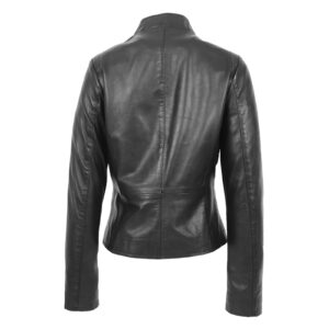WeeBroz Women’s Black Leather Biker Jacket Standing Collar Style