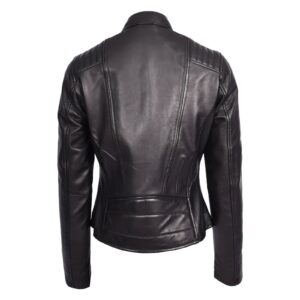 WeeBroz Women’s Black Leather Biker Jacket Collarless Quilted Style