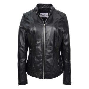 WeeBroz Women’s Black Real Leather Biker Jacket Soft Casual Zip Style