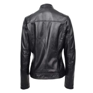 WeeBroz Women’s Black Leather Biker Jacket Standing Collar Slim Fit Style
