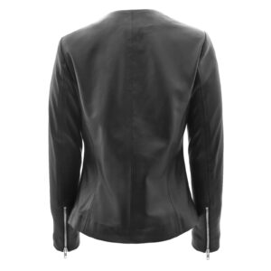 WeeBroz Women’s Black Real Leather Biker Jacket Collarless Style