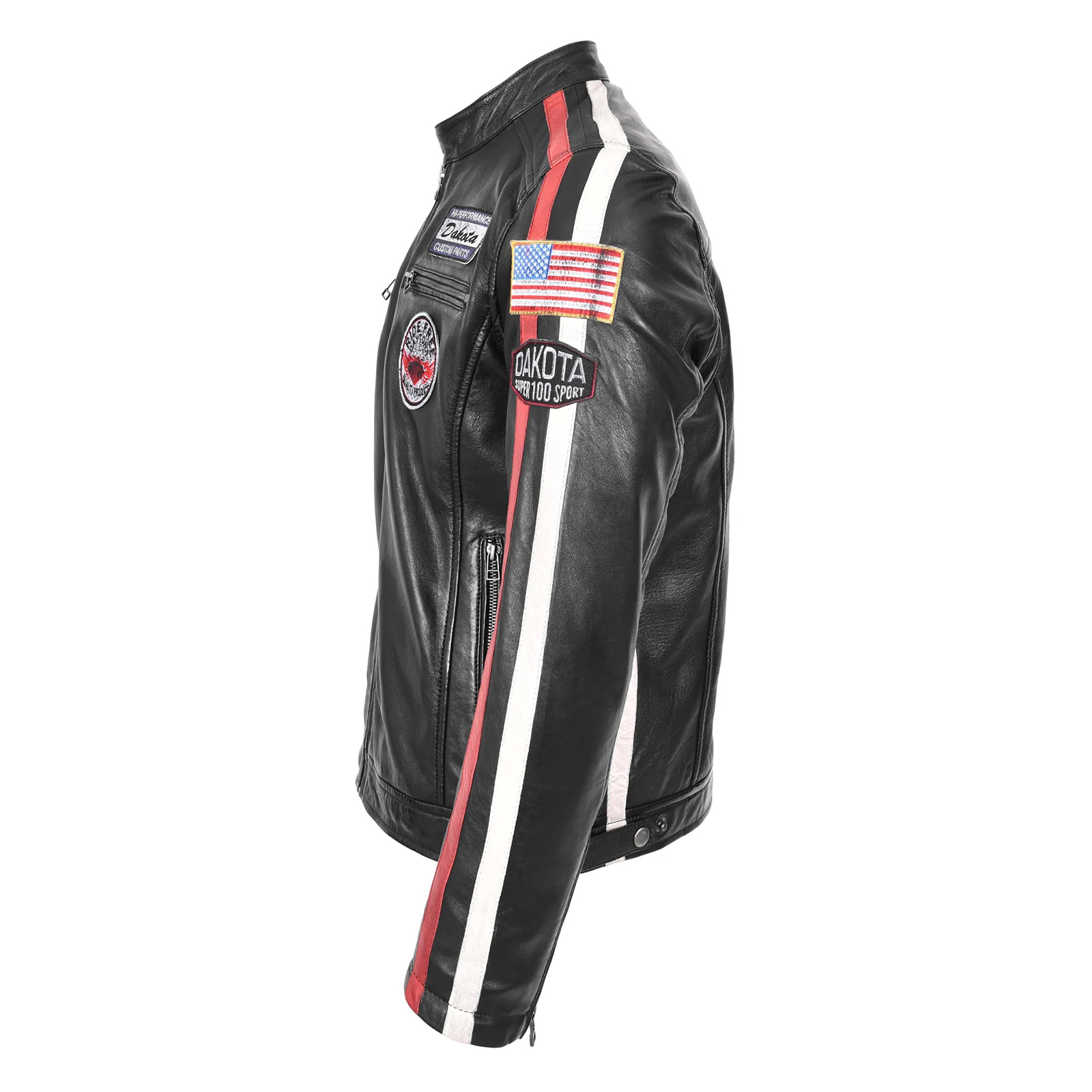Featuring authentic motorsport badges and bold racing stripes on the sleeves, it reflects speed, freedom, and the rebellious biker spirit. Complete with a secure front zip fastening, four outer zip pockets for practicality, zipped cuffs, and a snap-button buckled neckline, this leather biker jacket for men is built for both performance and style. Whether you’re on the open road or adding edge to your casual look, the Bobby Men’s Leather Biker Jacket makes a powerful statement.