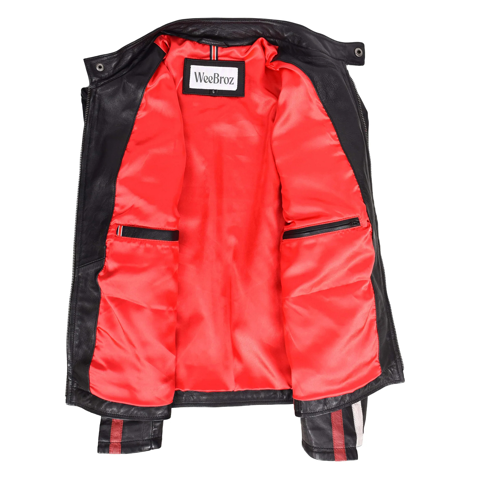 WeeBroz Men’s Black Leather Biker Jacket Motorsports Logos Style
