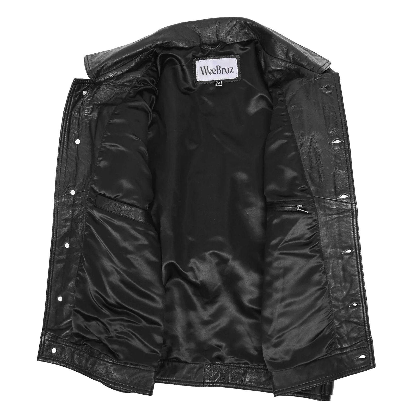 WeeBroz Men’s Black Leather Biker Jacket Zipper Biker Style
