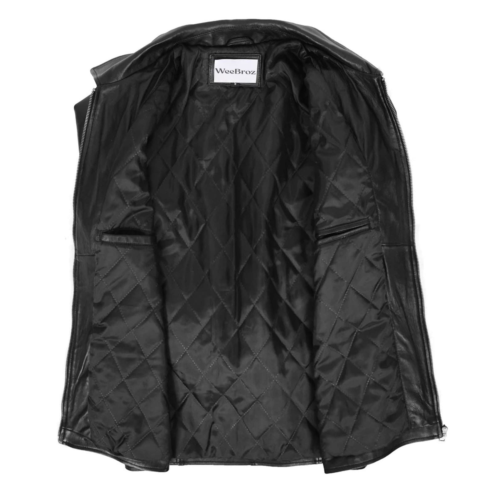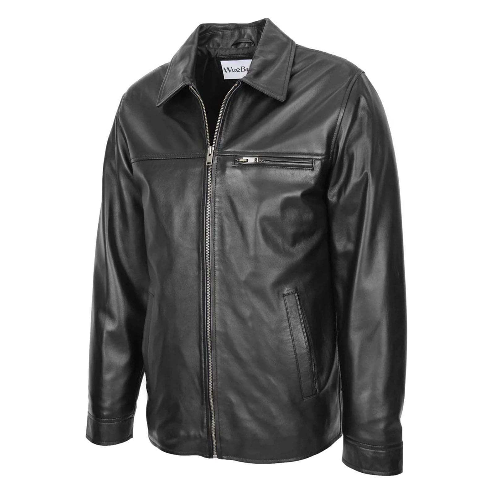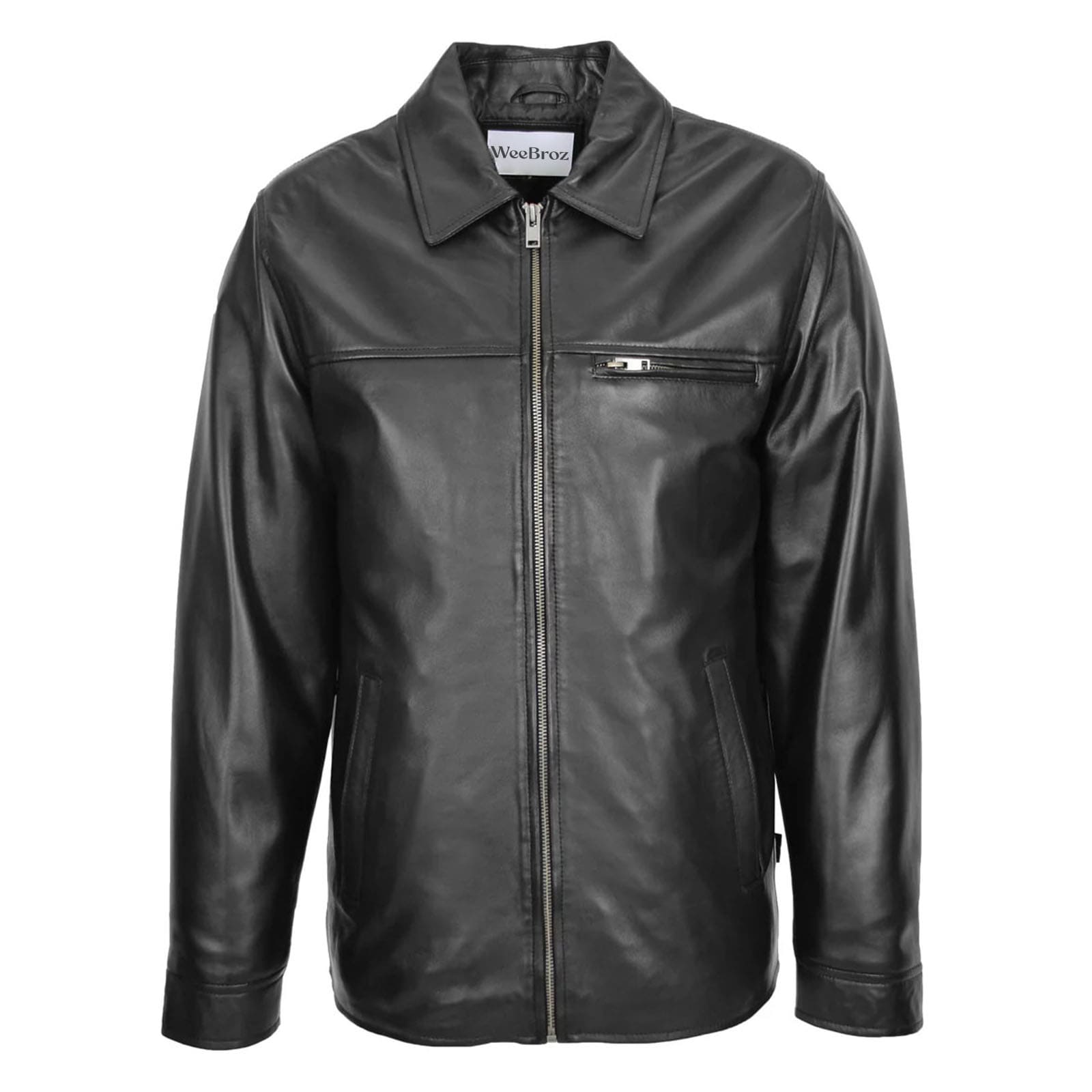 WeeBroz Men’s Black Soft Leather Biker Jacket Plain Zip Box Casual Style