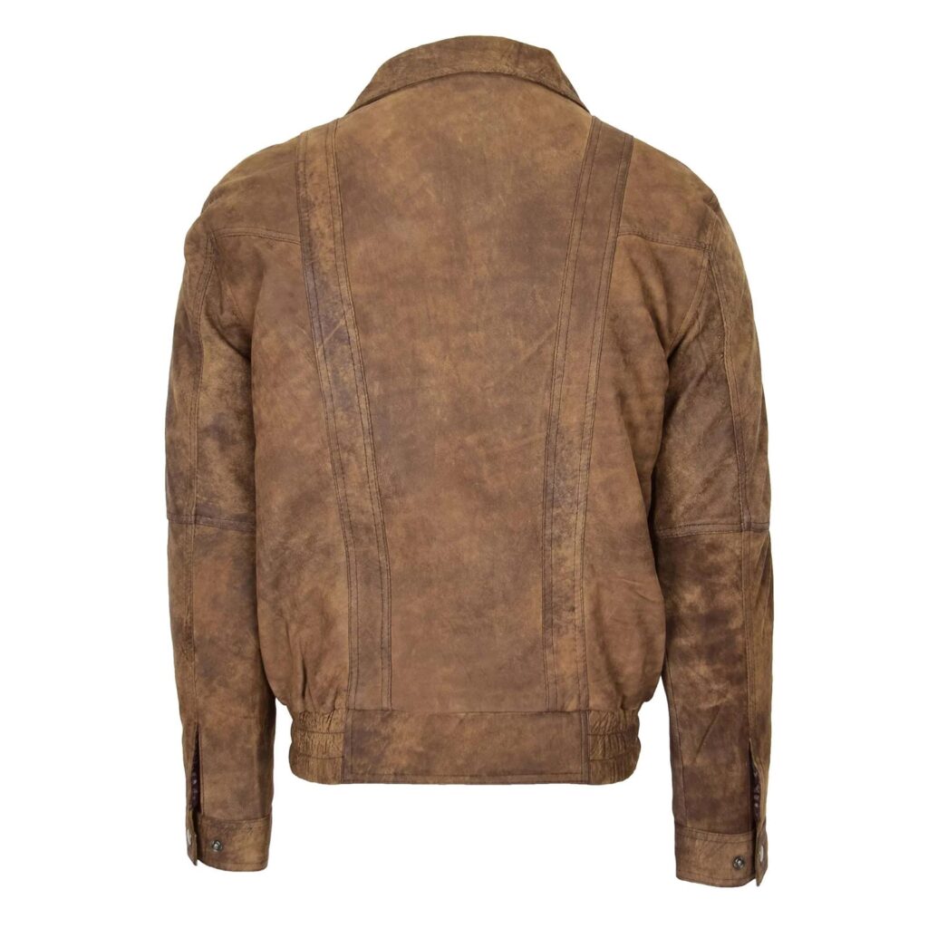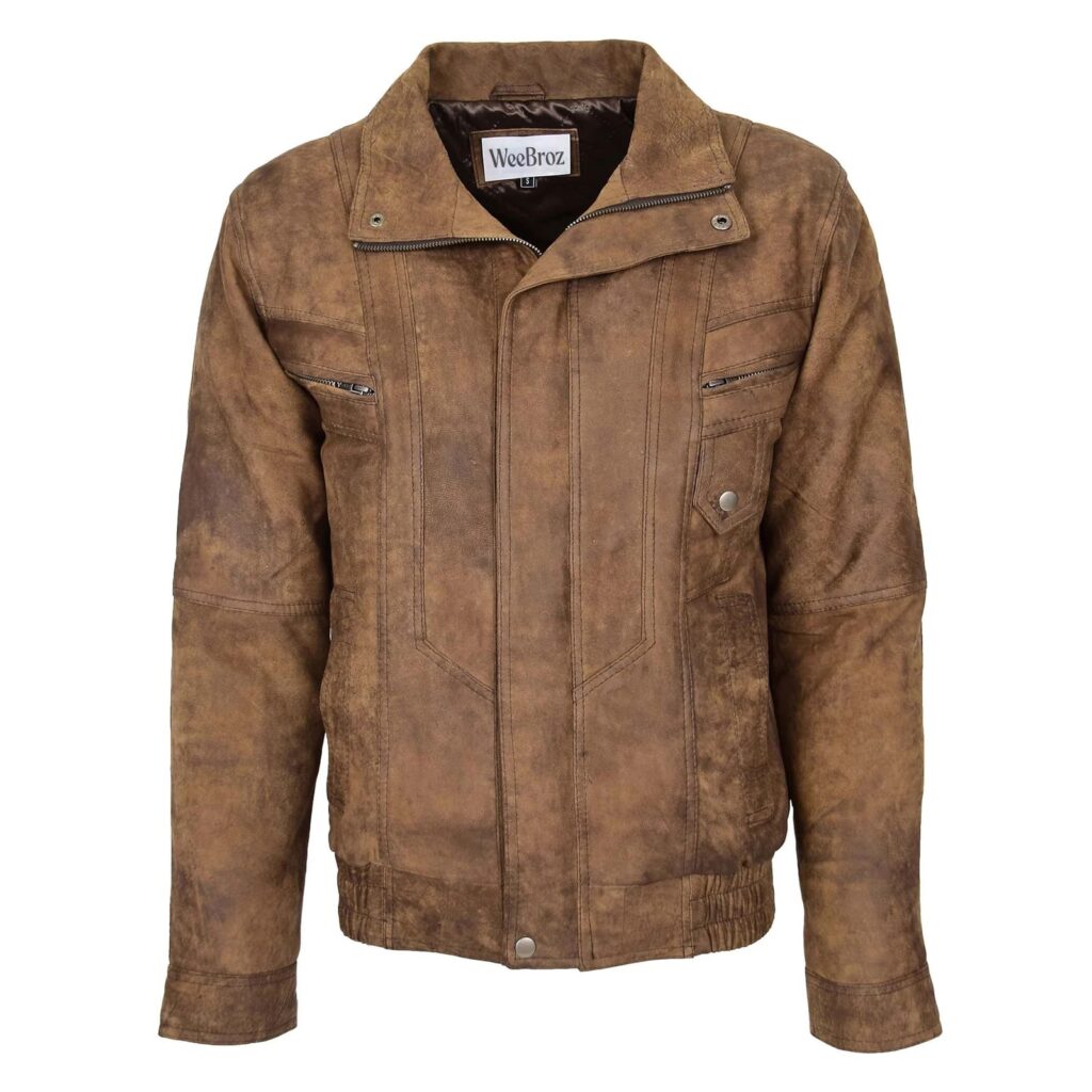 WeeBroz Men’s Brown Leather Bomber Jacket Blouson Jacket