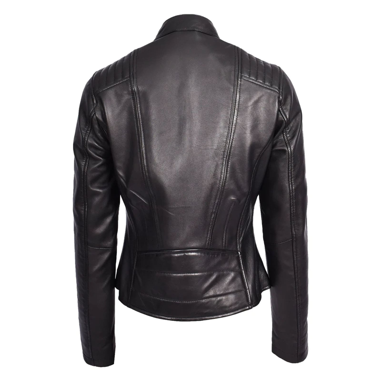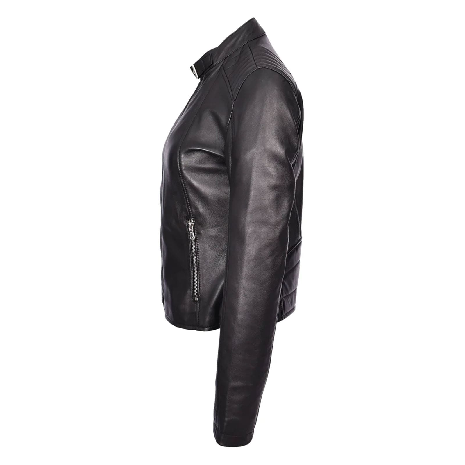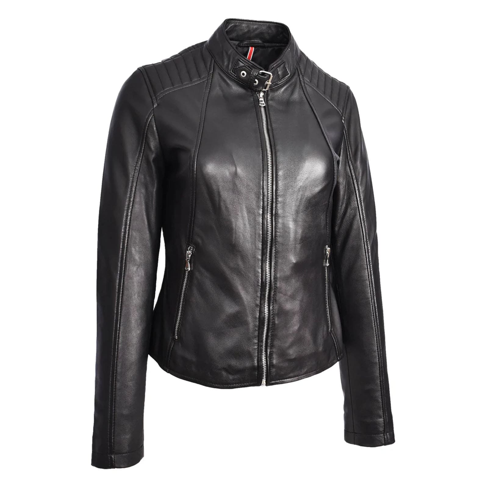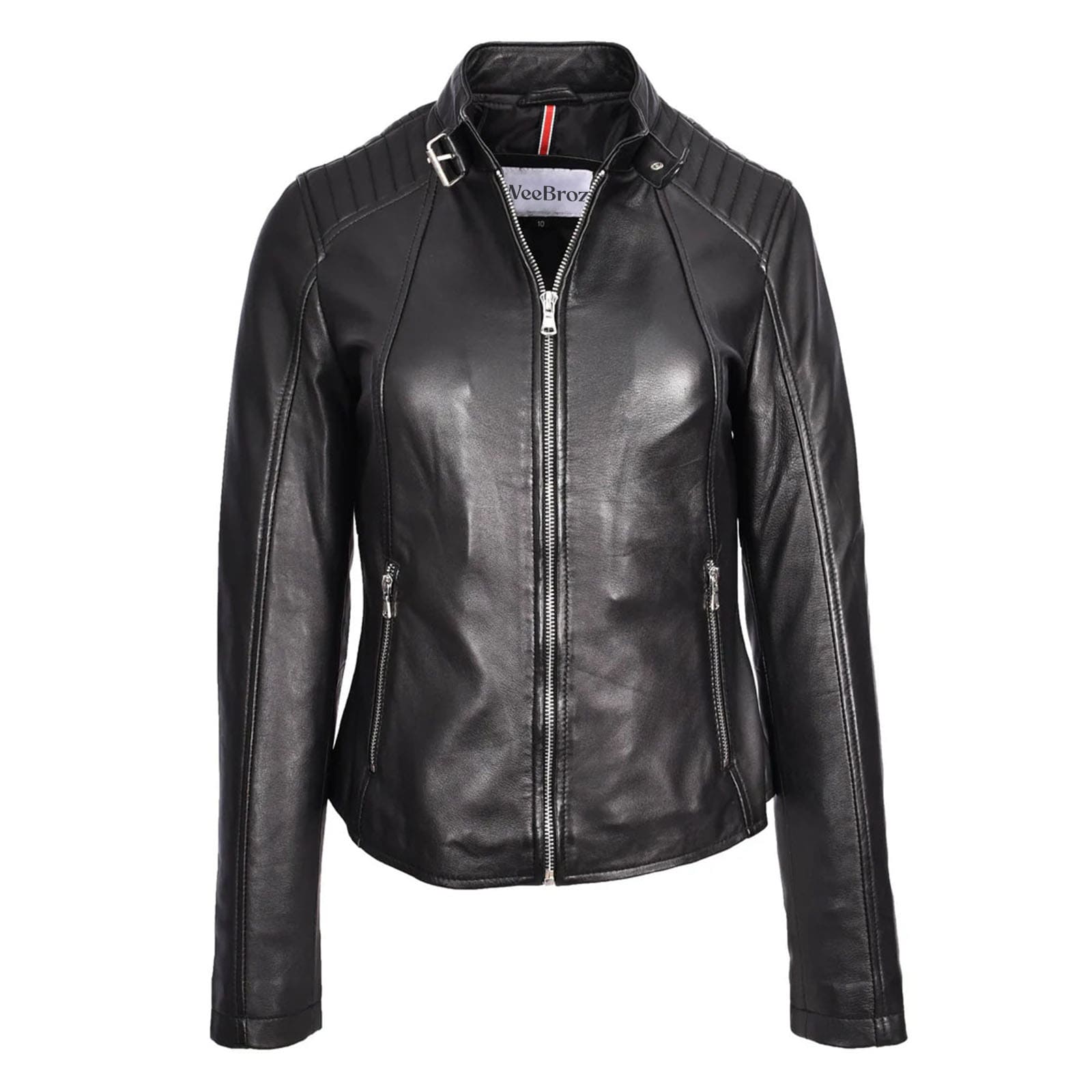 The ridged detailing at the shoulders enhances its authentic biker appeal, while the inner polyester lining ensures comfort for all-day wear. A must-have biker leather jacket for women that perfectly blends style, functionality, and attitude.