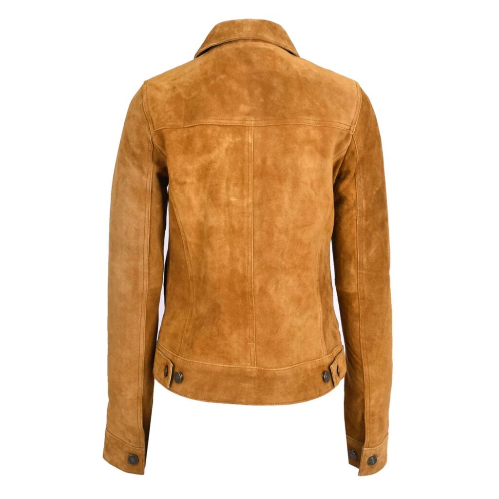 WeeBroz Women’s Brown Leather Biker Jacket Classic Zip Box Style