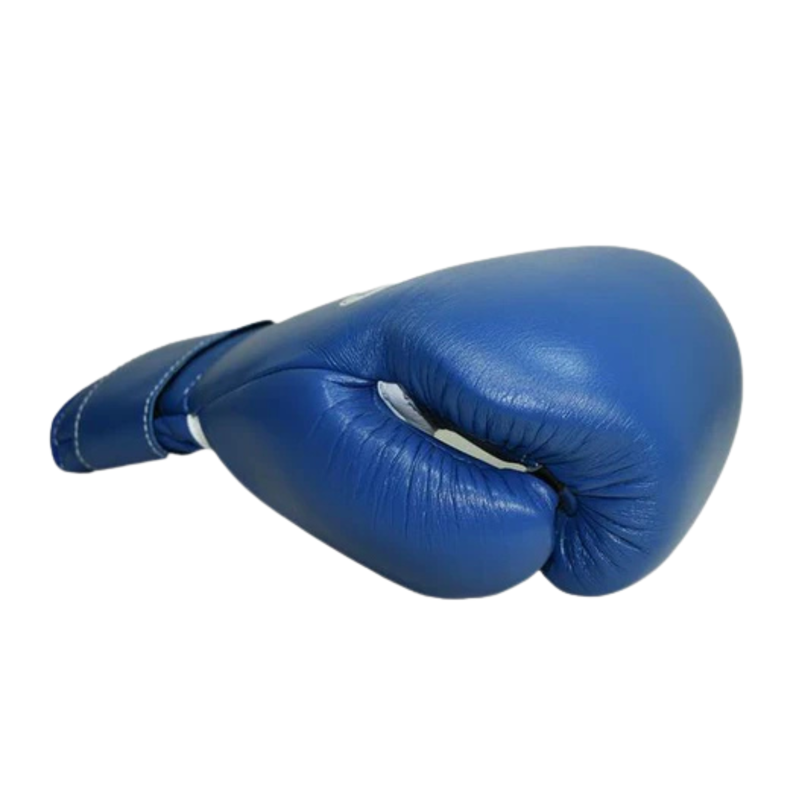Shop Winning Velcro Boxing Gloves in blue, designed for fighters who demand comfort, durability, and elite performance. These professional training boxing gloves are made from genuine leather and hand-stitched for long-lasting quality. The triple-layer EVA foam padding delivers excellent shock absorption, making them ideal for boxing training, sparring, and gym workouts.